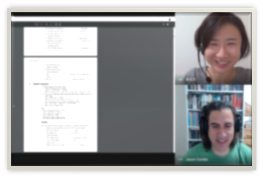 (分からない単語は日本語で質問しています。ジェーソンさんも答えてくれます。)