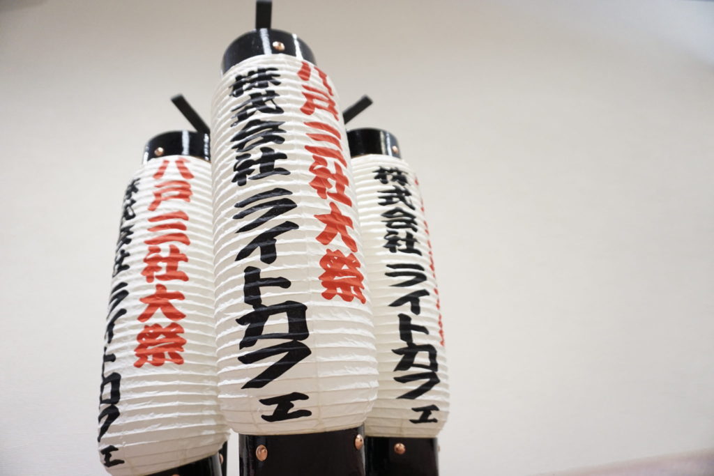 後日、 はちのへ山車振興会さまより、社名入りの提灯をいただきました!
