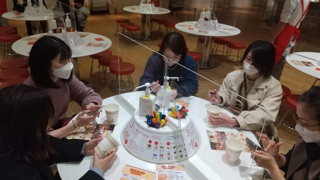 壁一面の歴代のカップ麺を見たり、フォトスポットで集合写真を撮ったり、