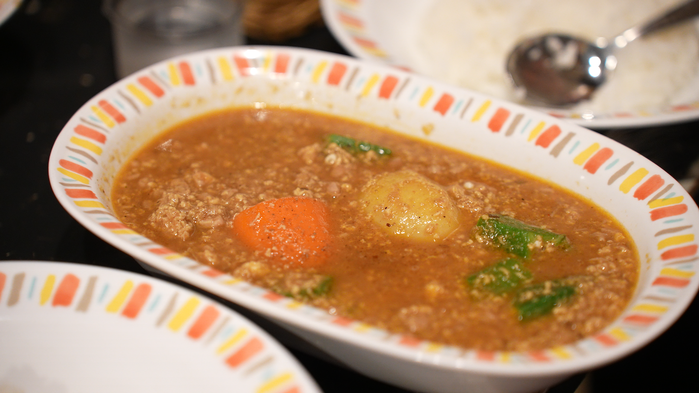 こちらでいただいたメニューは納豆入りのスープカレー『ナット・挽肉ベジタブル』