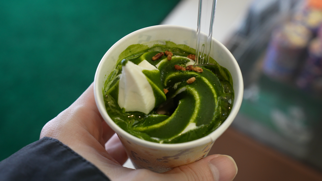 中でも人気を博す、北海道の完熟抹茶をブレンドしたソフトクリーム『雪萌えパフェ』を注文。
