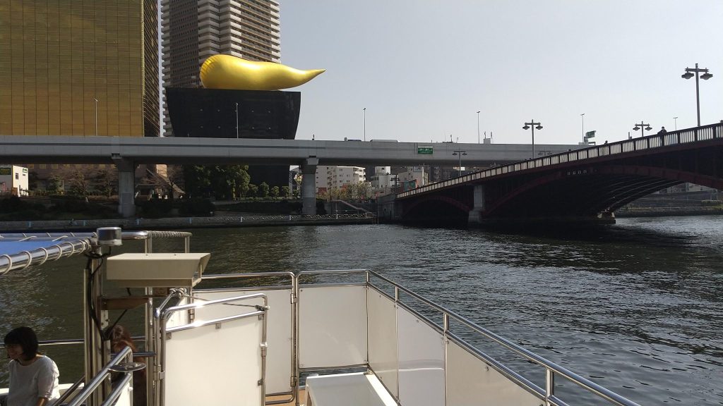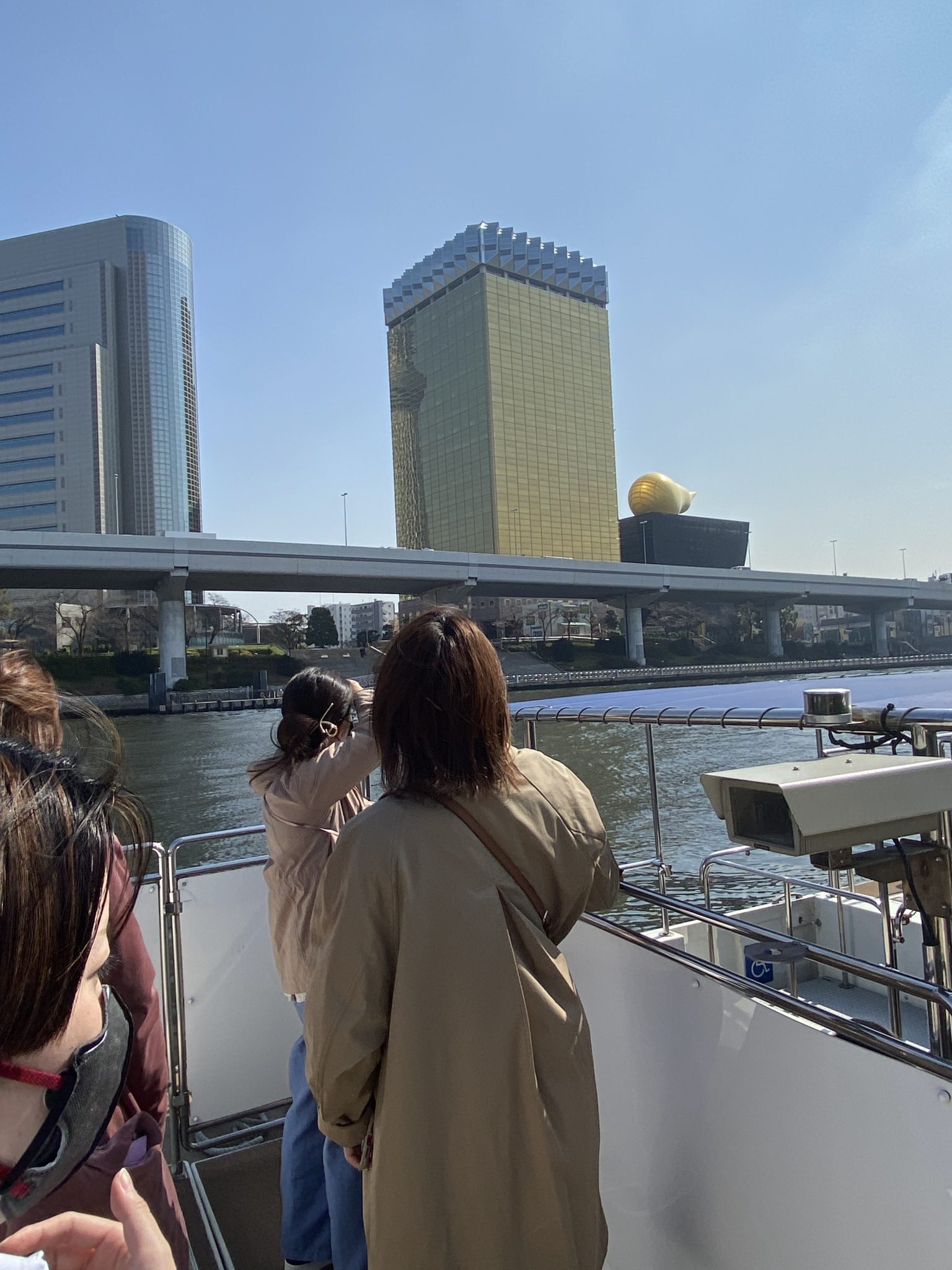 みんなご存じの、あのビル。川の上から眺めるのもまた、一興。前回も横浜で水上バスに乗船したわたしたち。なんか水上バスに乗るのが恒例になりつつあります(‘◇’)ゞ 日常とは違う体験として、水上バス、お手軽トリップでとってもおすすめですよ♪ 解放感も非日常感も、バツグンです。