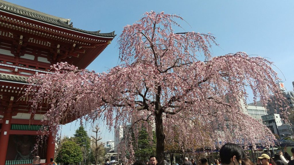 桜との共演も素晴らしい♪ いい季節に来れたなあと感動。日本の美を実感できました。この季節に浅草、寒くもなく暑くもなく、桜も美しく、おすすめです。