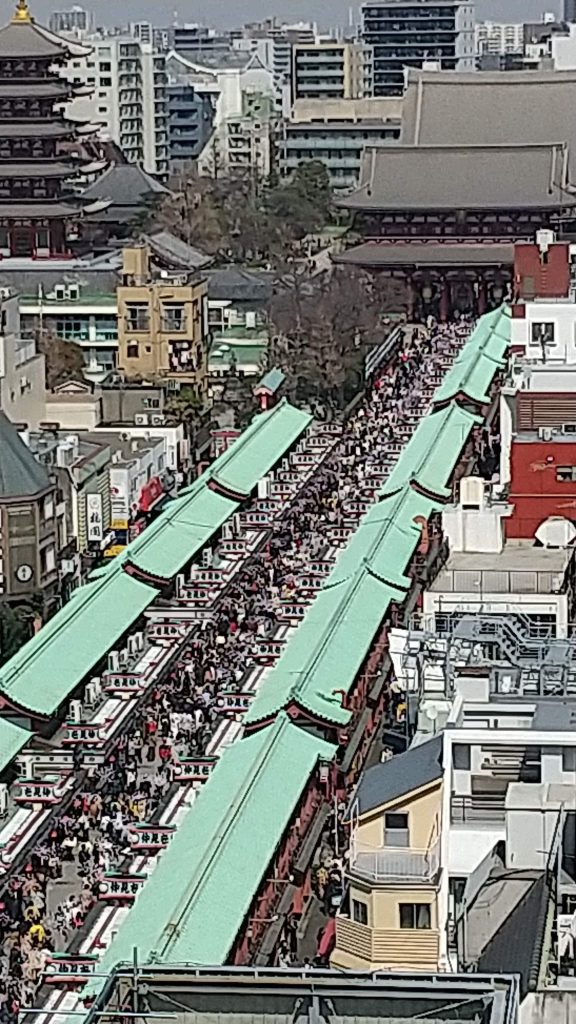 近くにあった浅草展望台から望む仲見世通りはこんな感じ。