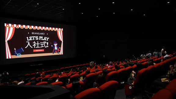 沖縄県内初となる映画館での入社式開催で、ライトカフェのメンバーや役員陣も参加しました!