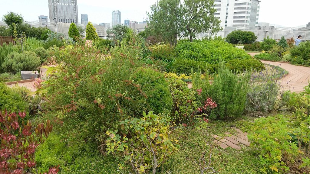 そして・・・・。業務がカツカツで柴又観光にジョインできなかったメンバーは、お昼休憩の時間にサクッとでもいいから観光したい!と、会社近辺の観光スポット情報を執念で検索。すると、最寄り駅の駅ビル屋上に、空中庭園なるスポットがあるという情報をゲット。これは・・・!できるじゃん、すきま時間観光!と、早速駆け足で行ってみました。
