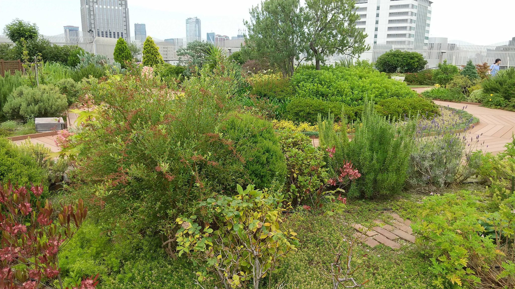 日差しが強くても、ビルの屋上だから風が吹き抜け、ドリンク片手に無になれる、なるべくなら秘密にしたいスポットです。喧噪もビルの下での出来事。このエリアは吹き抜ける風の音が耳にまとい、色とりどりの花やハーブ、手入れの行き届いたグリーンに心洗われるひと時を過ごせたのでした。