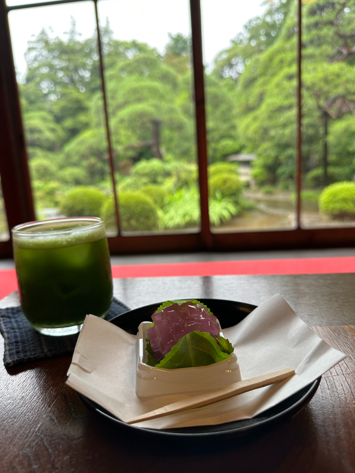 雨に濡れる庭園は、それはまた情緒があふれ、そんなお庭を眺めながらのティータイムは、至福のひと時。これ、そのうちバズって、外国の方であふれてしまうかもしれません。(もうバズってるかもしれませんっ)日本の良さを感じられる、素晴らしいひと時を過ごせます。