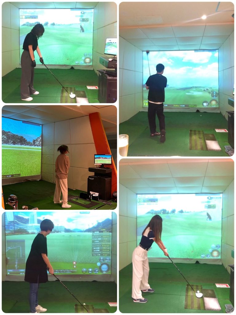 今回はいつも以上に大人数での開催となり、4チームに分かれてシミュレーションゴルフの対戦を繰り広げてまいりました。