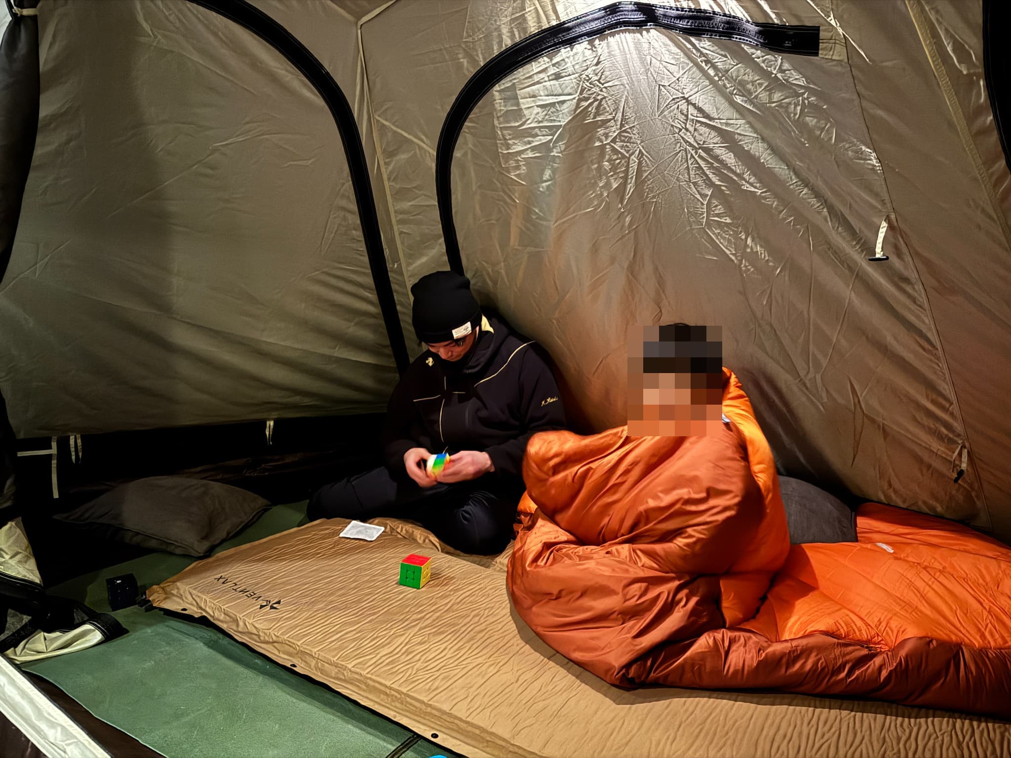 夜は気温が0℃まで下がりましたが、冬用シュラフのおかげで快適に過ごせました。
