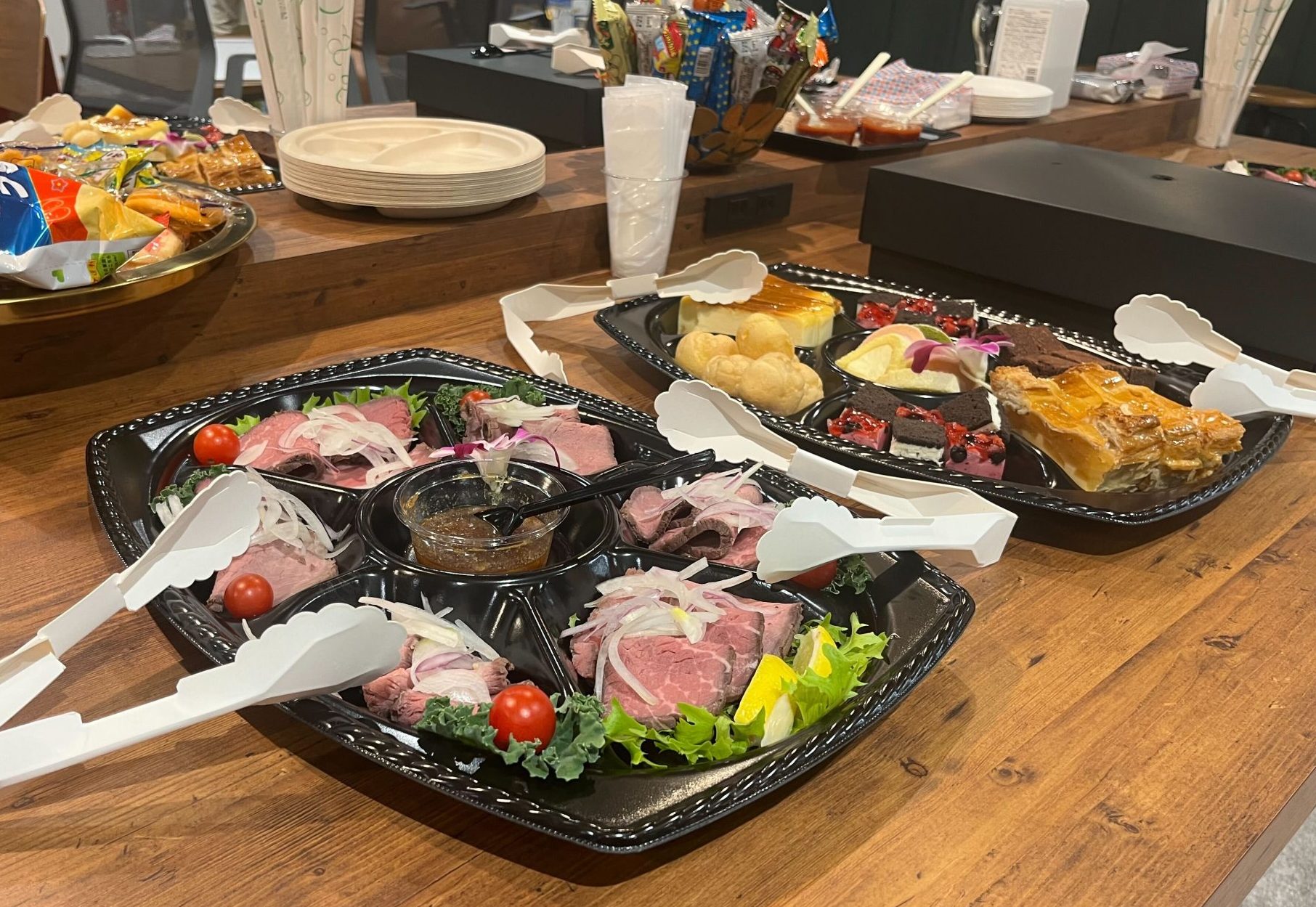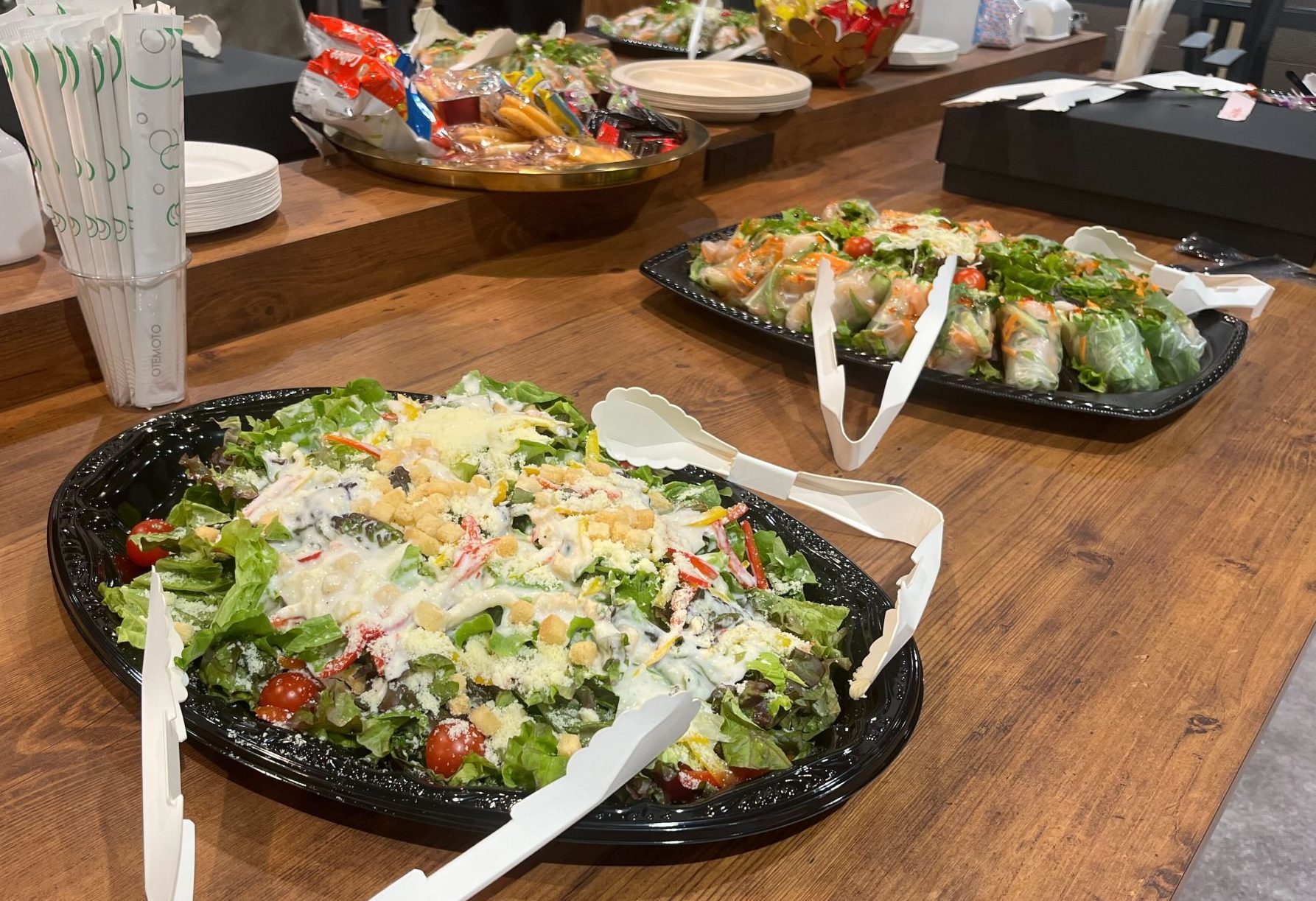 受付を済ませてオフィスのリフレッシュエリアへ向かうと、テーブルには美味しそうな料理がズラリ…!!