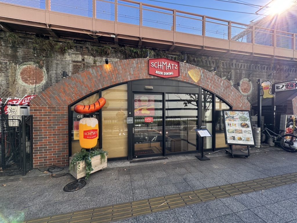 ジャーマンクラフトビールとドイツ料理が楽しめるお店で、高架下にある入口が可愛かったです。