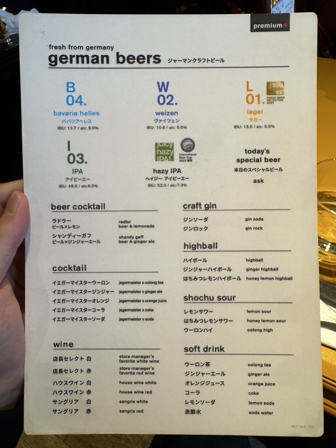 - 本日のスペシャルビール
