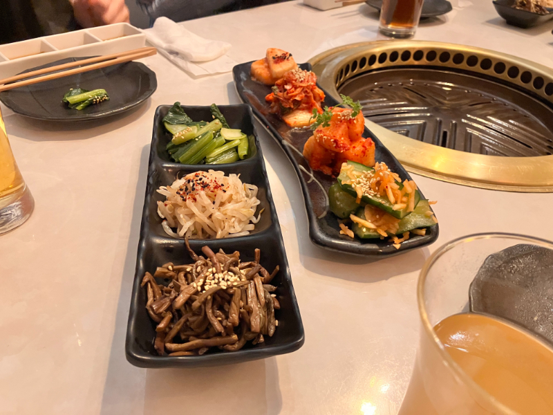 はじめはキムチとナムルの盛り合わせ。キムチは辛さがちょうどよくておいしかったです。