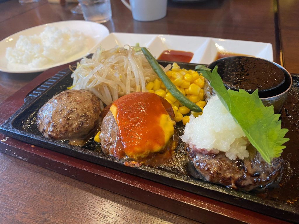 肝心のハンバーグですが、熱々ジューシーで食べ応えがあって最高でした!!