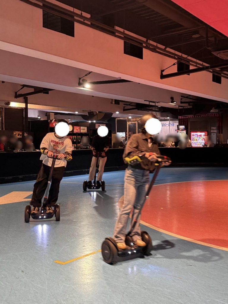 あいにくの雨のため、屋上スペースでの活動はできませんでしたが、ローラースケートや卓球、セグウェイ、ゴーカートなど様々なスポーツを楽しむことができました!