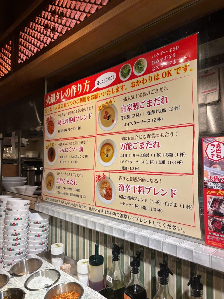 店内には自分で調合できるタレBarもあり、好みの火鍋タレで楽しむことができました!