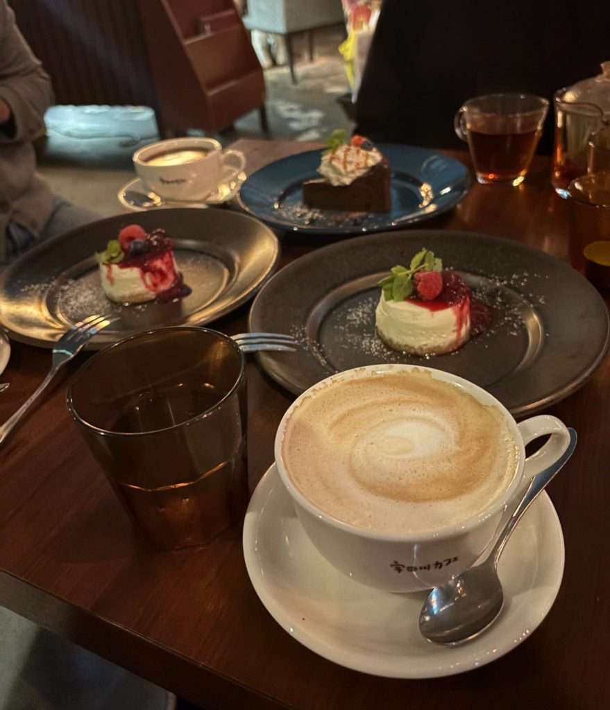 お洒落な店内でチーズケーキやガトーショコラとコーヒーをいただきました♡