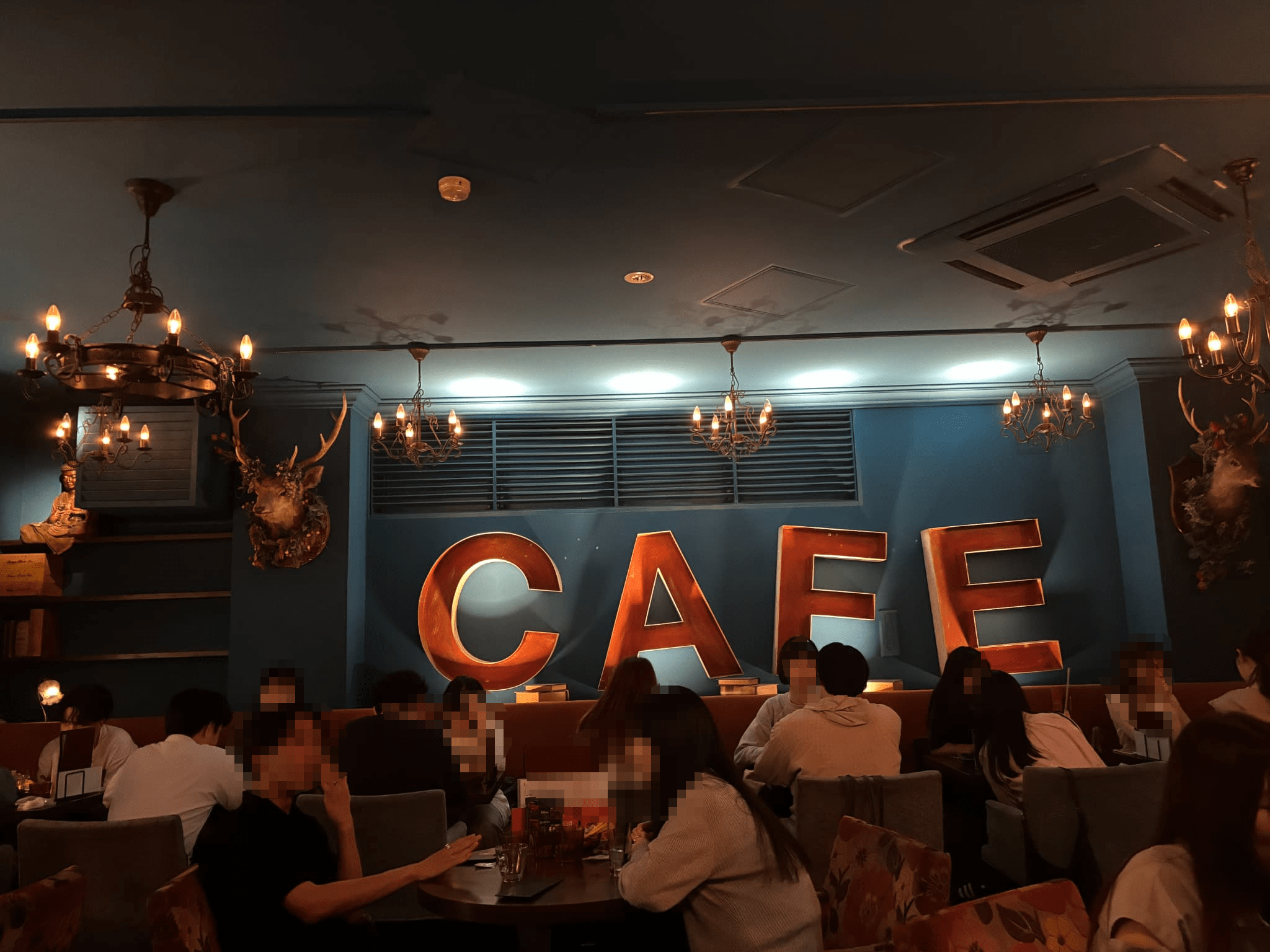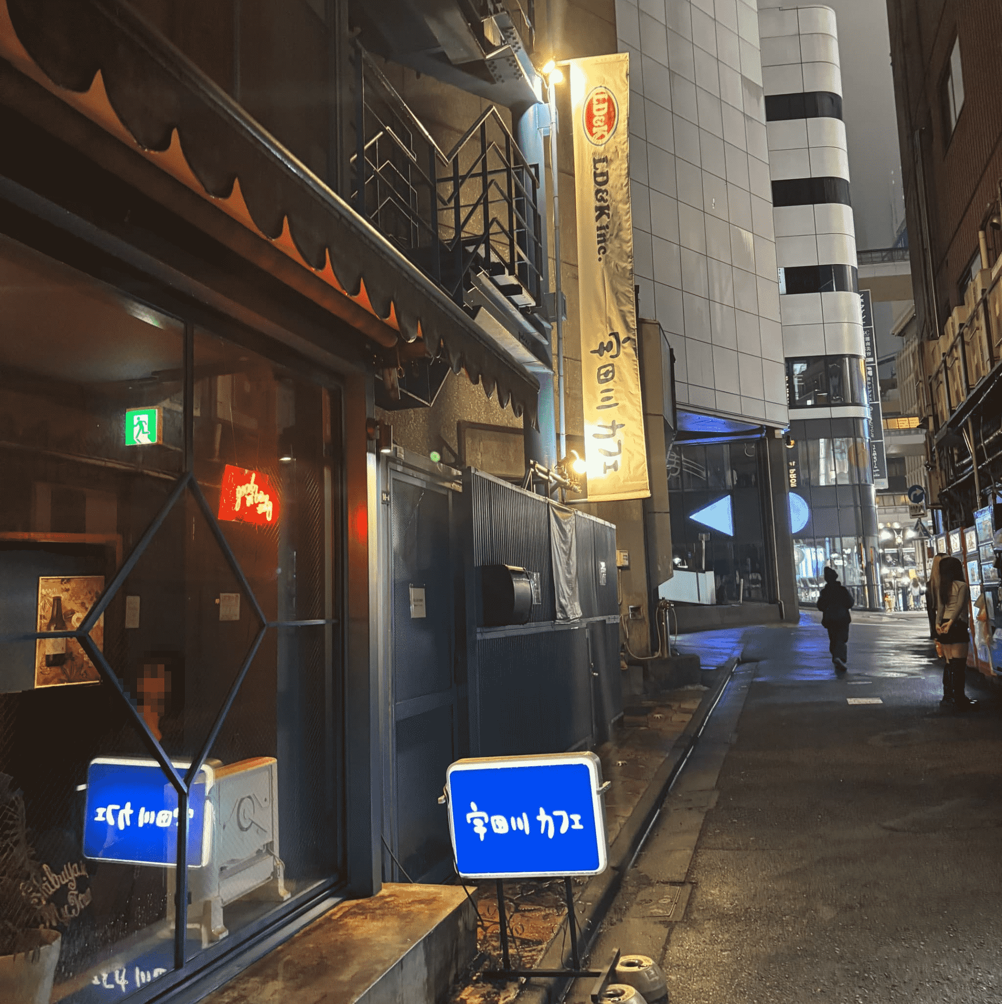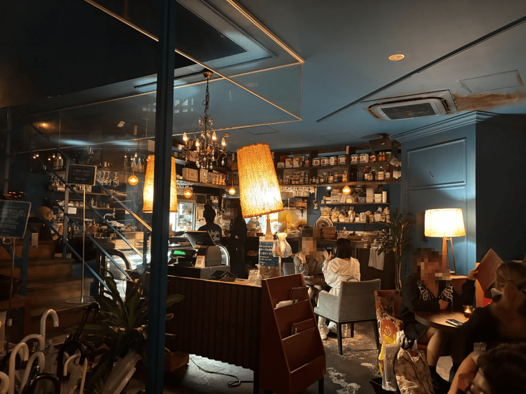 夜も開いているカフェでお酒やケーキを楽しむことができ、平日の夜でも行列ができていました。
