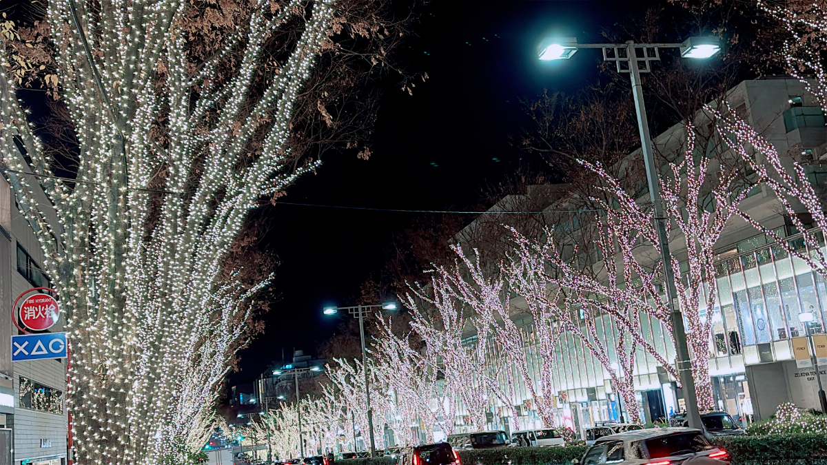 たくさんの人が訪れる観光名所にもなっているケヤキ並木は、イルミネーションのライトアップがとても綺麗で、テンションがあがりました♪