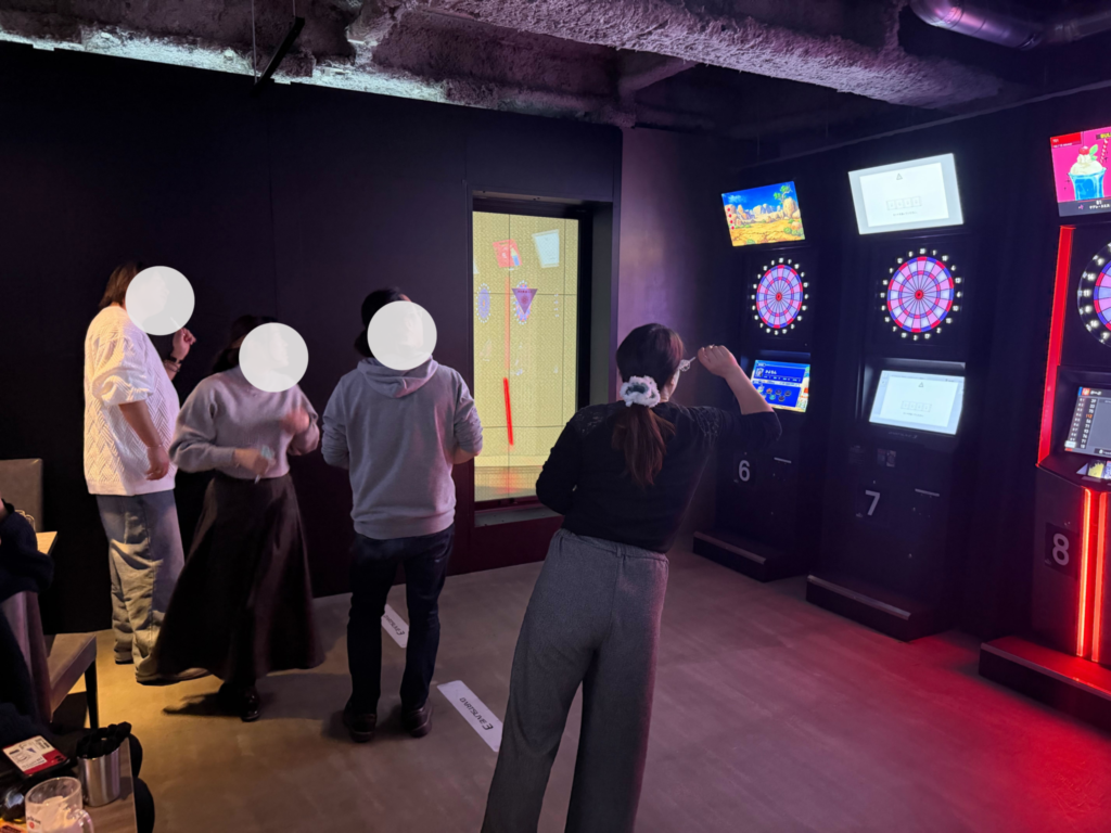 ダーツは4台が投げ放題で、待ち時間もほとんどなく、初心者から経験者まで思い思いにプレイしました!