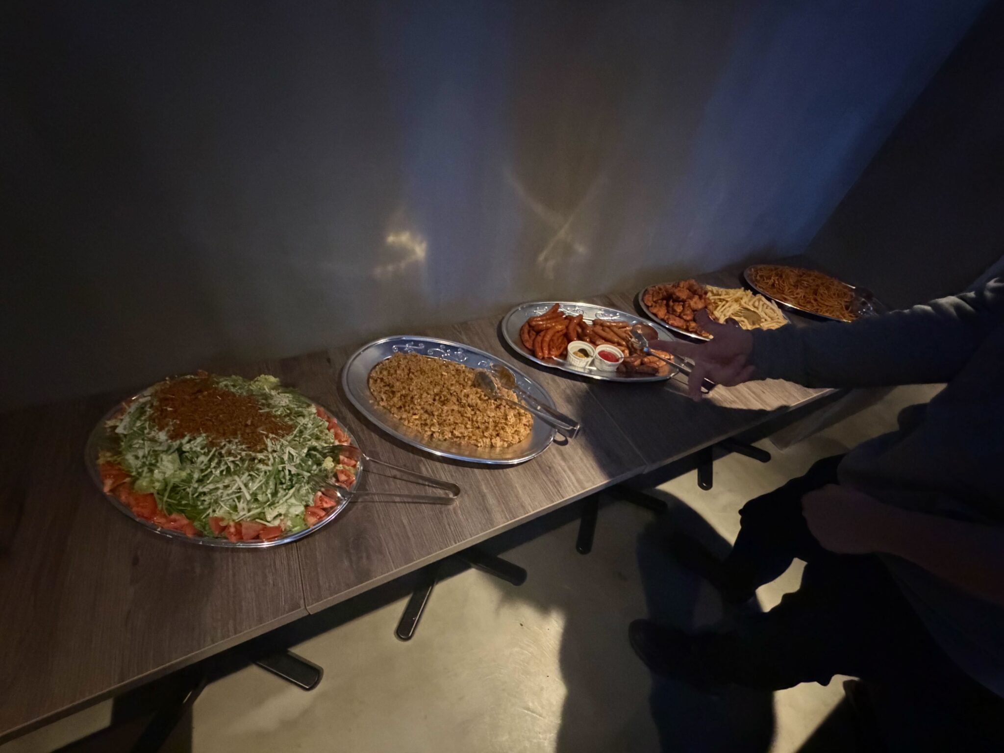 今回のお食事は、サラダにフライドポテト、唐揚げ、ソーセージ、そしてチャーハンまで!