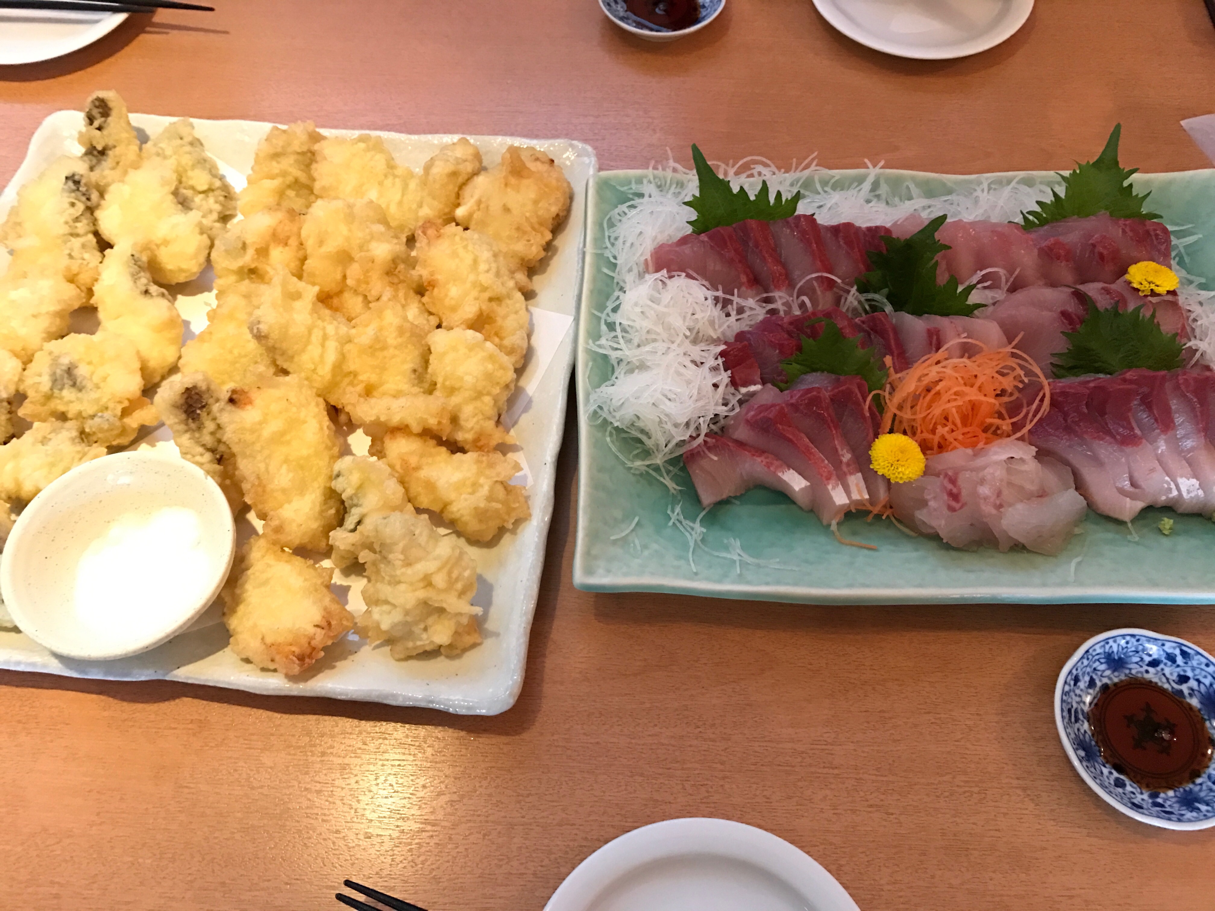 料理はワラサ、タイ、クロソイのお刺身、マハタ、タイのてんぷら♪美味すぎる…