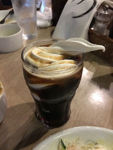 ドリンクバーもつけたのでコーラとアイスクリームでコーラフロートです。
