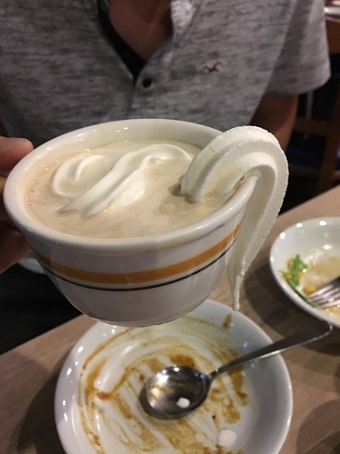 カレーはカップに入れてゴクゴクいきます。