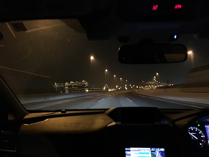 平日夜の湾岸線上りは車が走ってなくてゲームみたいです。