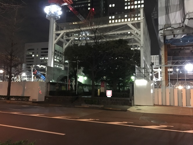 再開発でまわりは工事中ですが将門塚だけはガッチリガードされてます。
