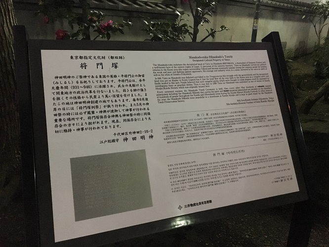 敷地内に入ってすぐ左に将門首塚の由来についての説明がありました。