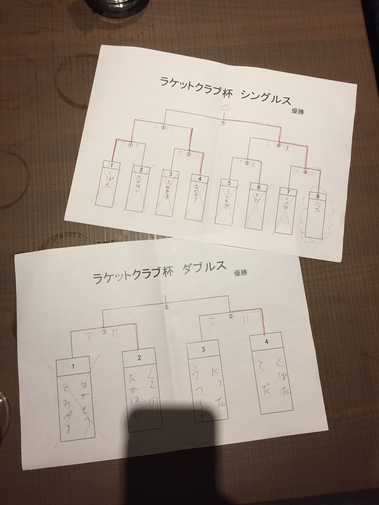 あとはくじで決めた組み合わせでシングルスやダブルスのトーナメントをやりつつ、