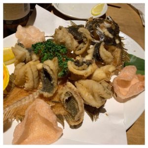 刺し身がコリコリして美味しい〜!フライも身がフワッフワ!これはついついお酒もすすんでしまいます(笑)