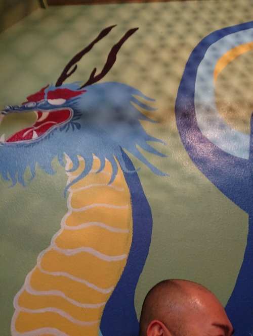 店内はこんな感じでした。龍の絵はまだ制作途中らしいです。