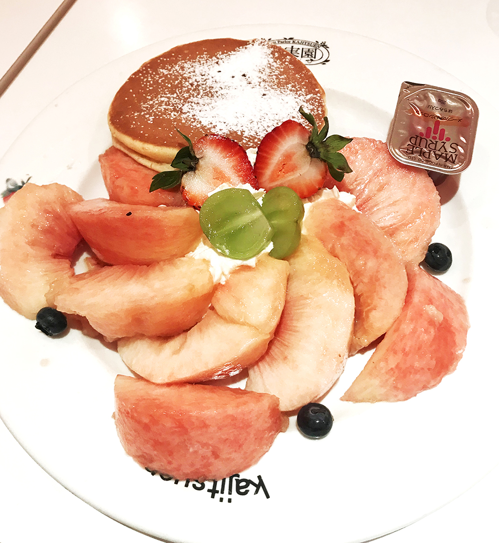 まずはこちら。桃のパンケーキです。